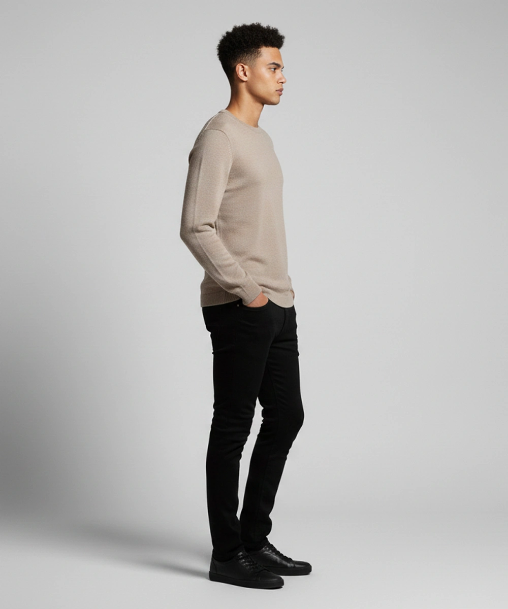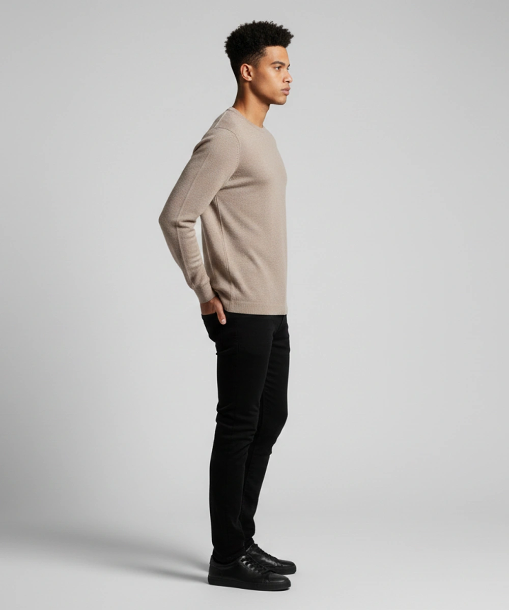 Classic Crew Neck: Timeless neckline that layers effortlessly under jackets, coats, or worn alone for a clean everyday look.