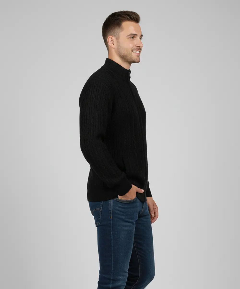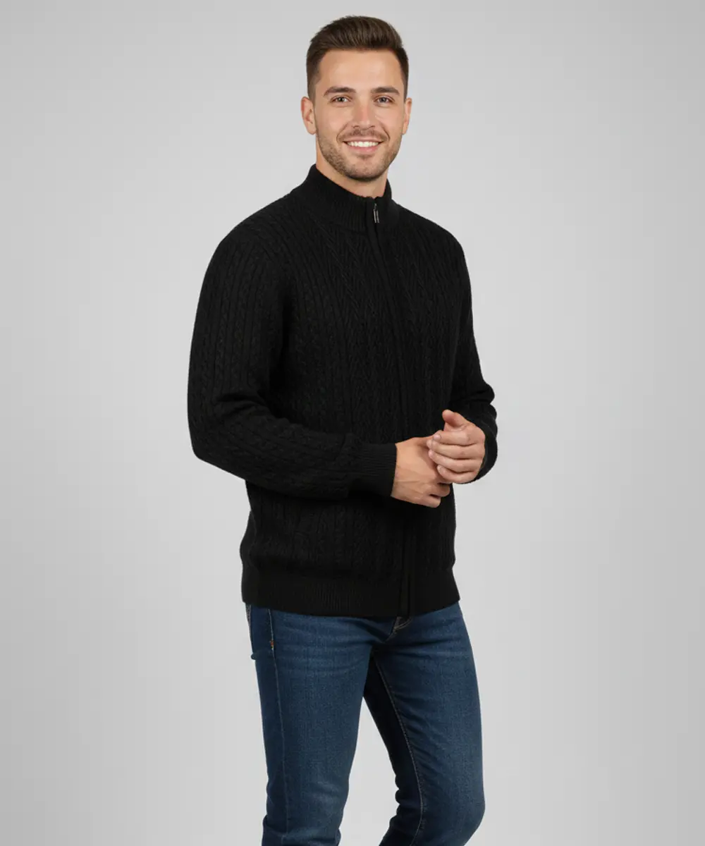 This men’s zip-up knit cardigan combines modern style with everyday comfort. Featuring a refined textured pattern, it offers a clean and versatile look suitable for casual and smart-casual wear. The full-zip front allows easy layering over T-shirts or shirts. Designed for a tailored fit, it’s an essential piece for transitional seasons.