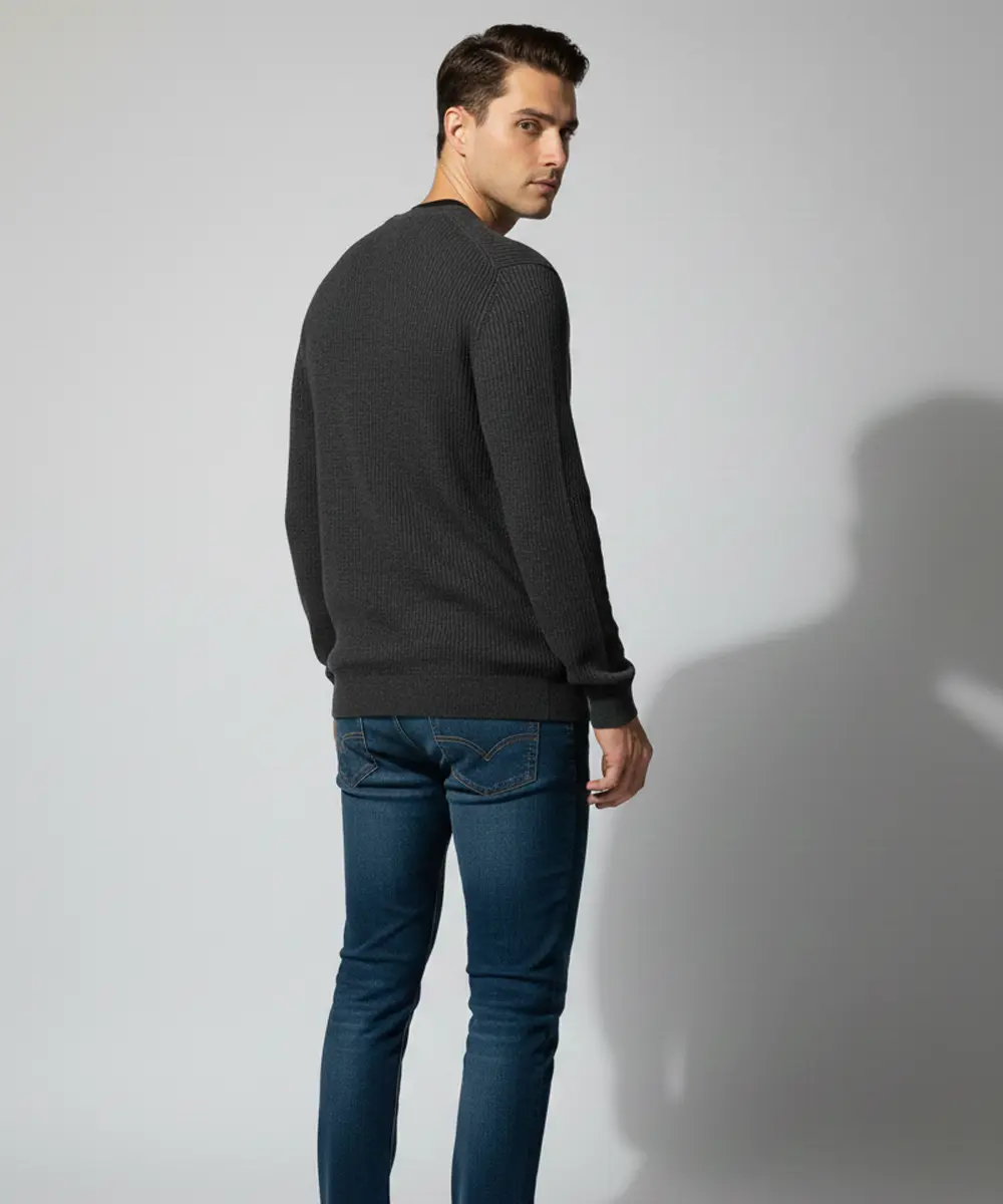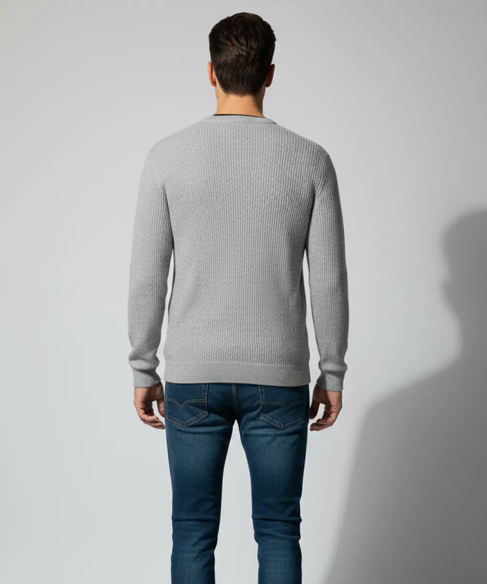 This men’s V-neck knit sweater delivers a refined, casual look with timeless appeal. Designed with a subtle all-over pattern, it balances style and comfort effortlessly. The tailored fit makes it ideal for both everyday wear and smart-casual occasions. Easy to layer or wear on its own, it’s a versatile wardrobe essential.