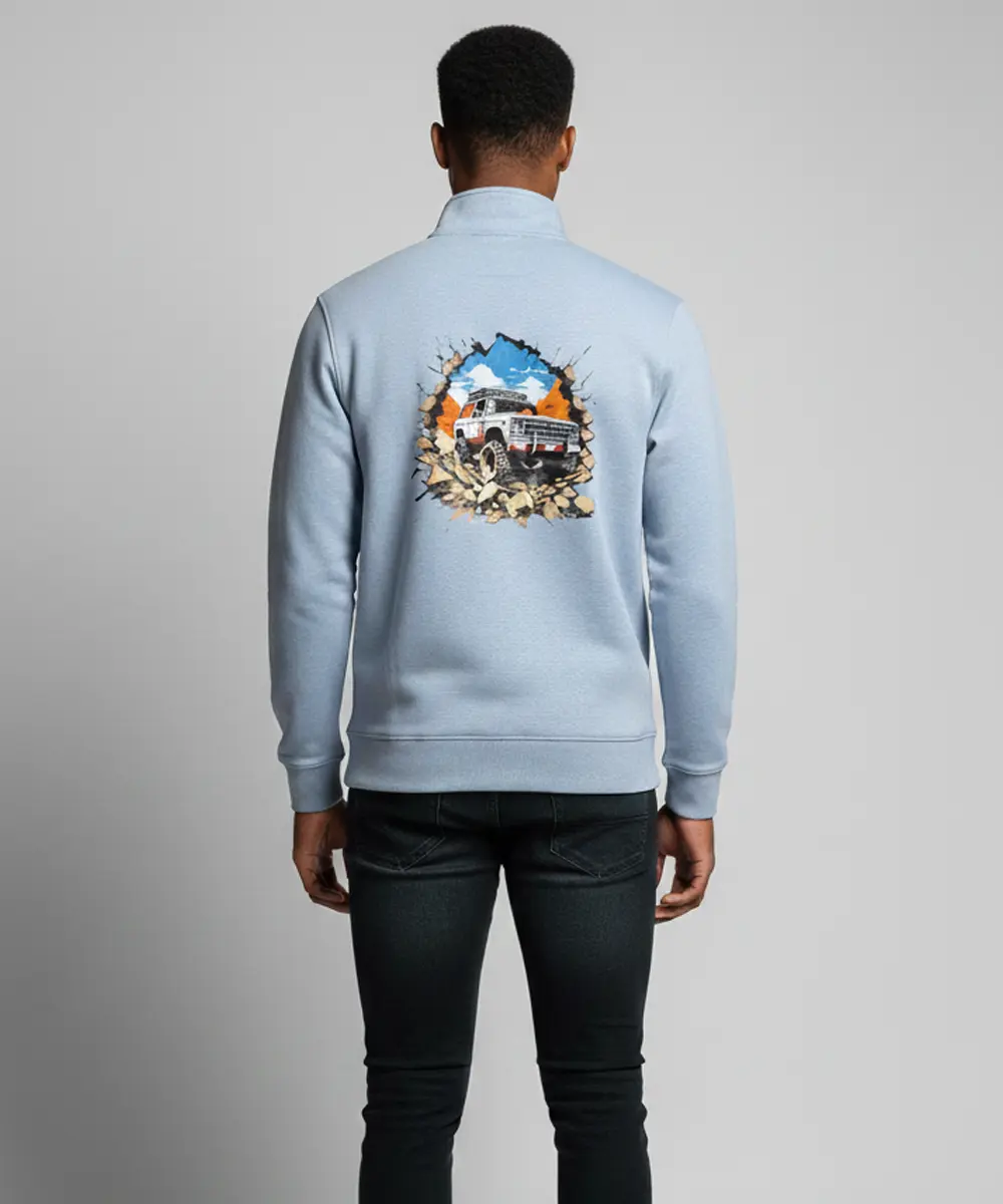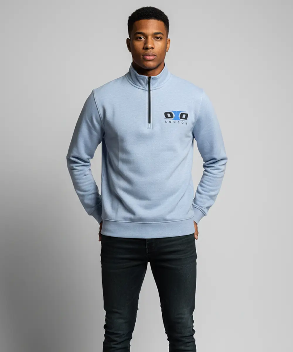 Men’s Premium Half Zip Sweatshirt with Side Pockets | Regular Fit | Ice Blue Printed Casual Wear