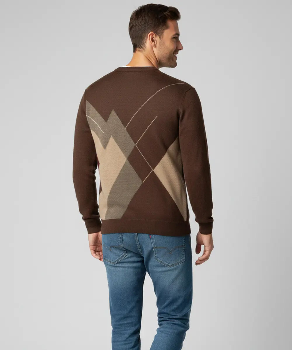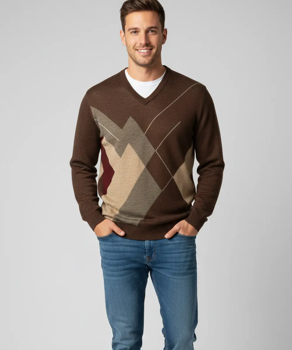 Be the first to review “Men’s Reversible Brown and Beige Sand V-Neck Patterned Knit Sweater”