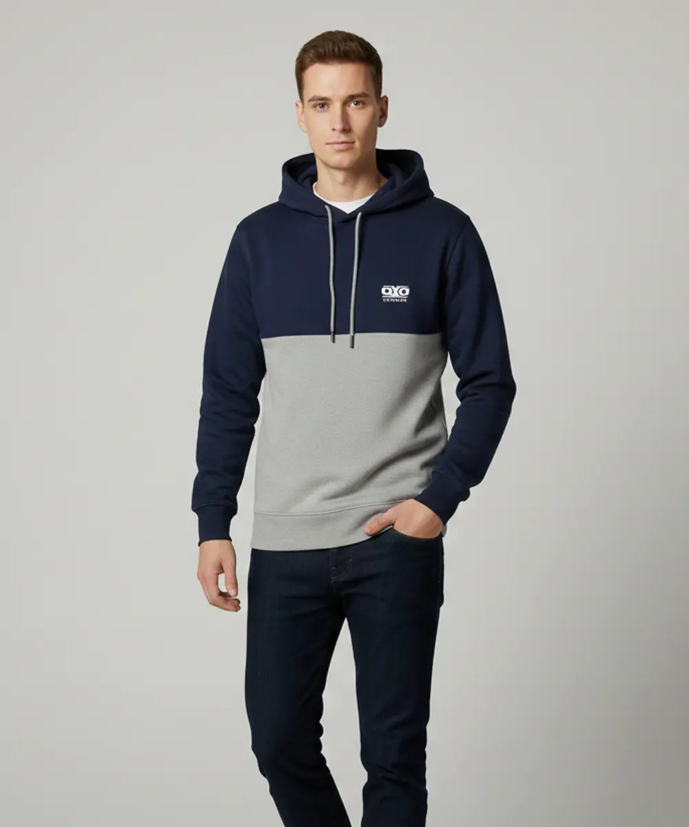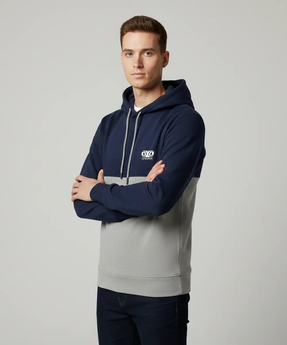 Multicolor Premium Hoodie Sweatshirt with Side Pockets | Regular Fit | Navy Blue & Grey Casual Wear