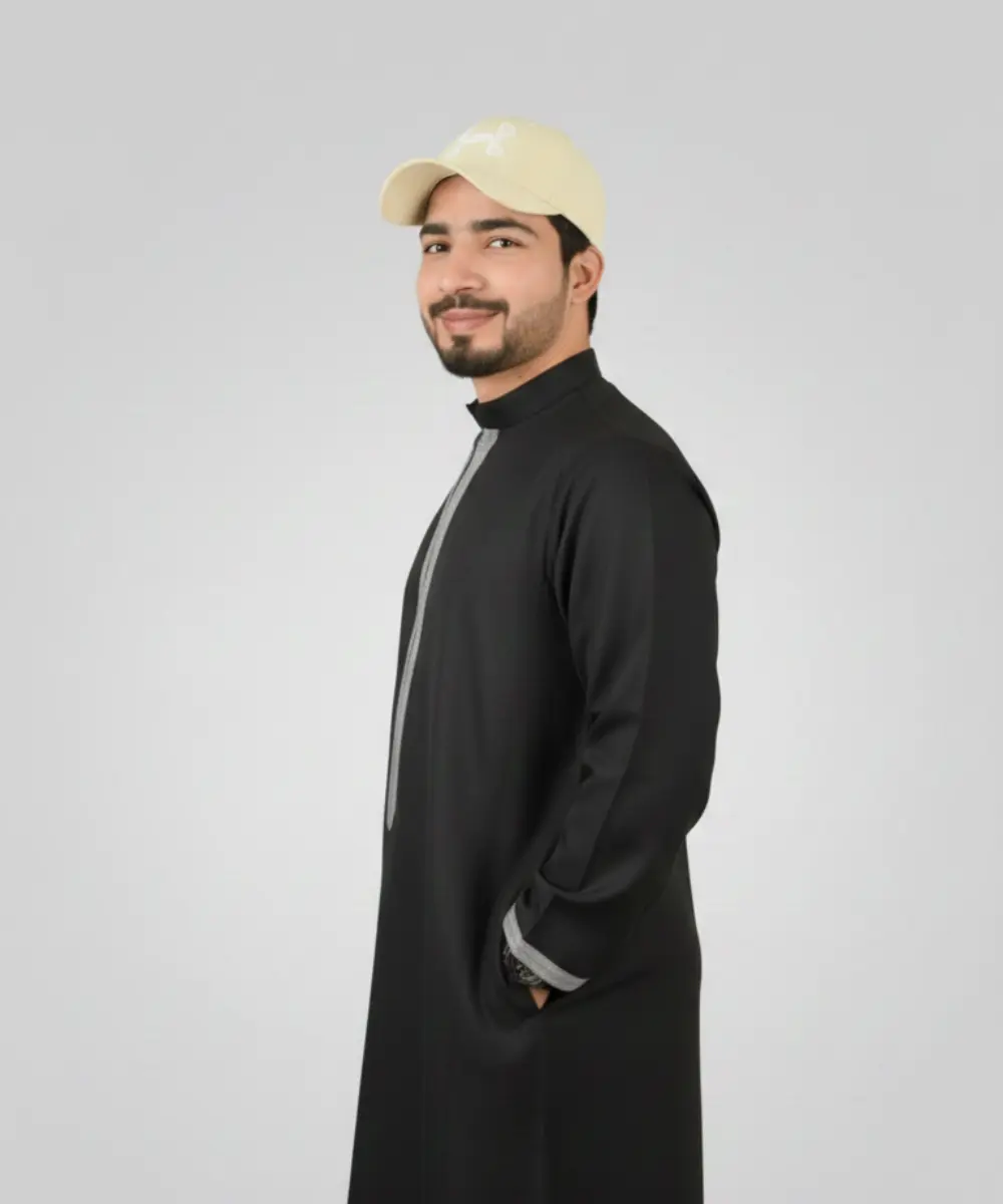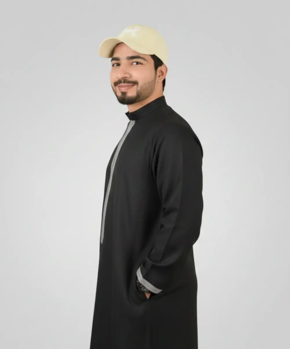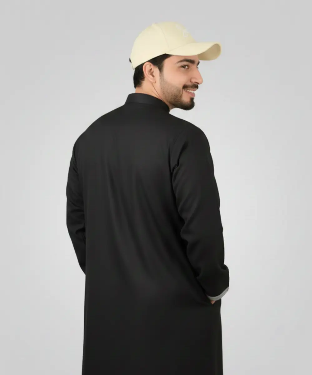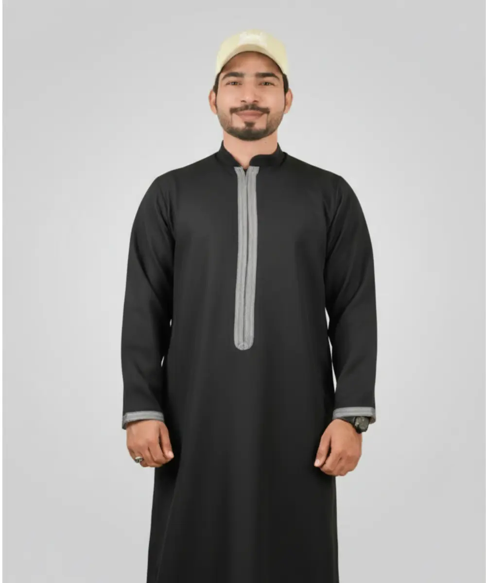 Premium Men’s Modern Thobe –BLACK WITH GREY