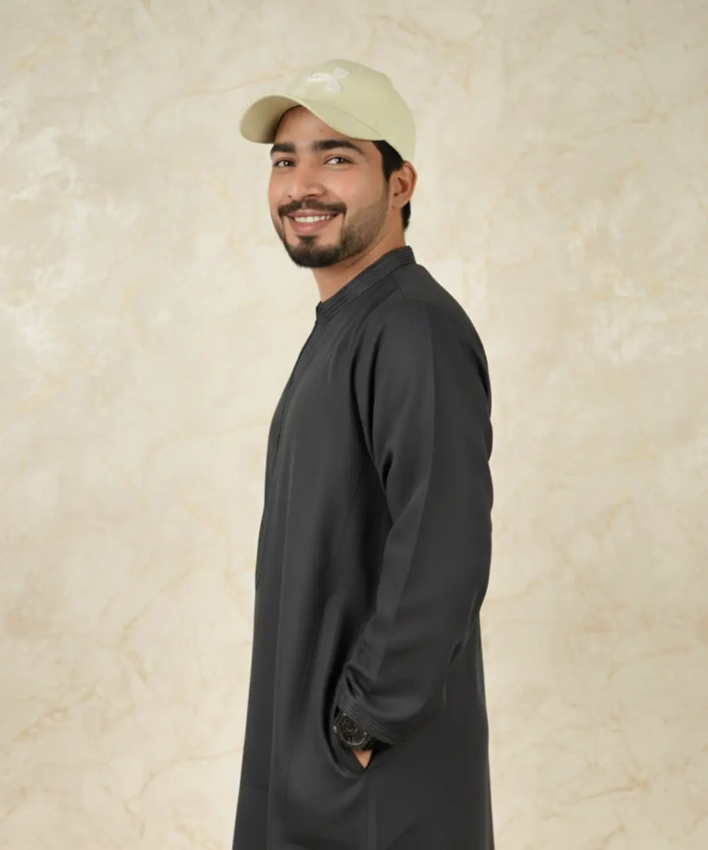 Premium Men’s Modern Thobe –BLACK
